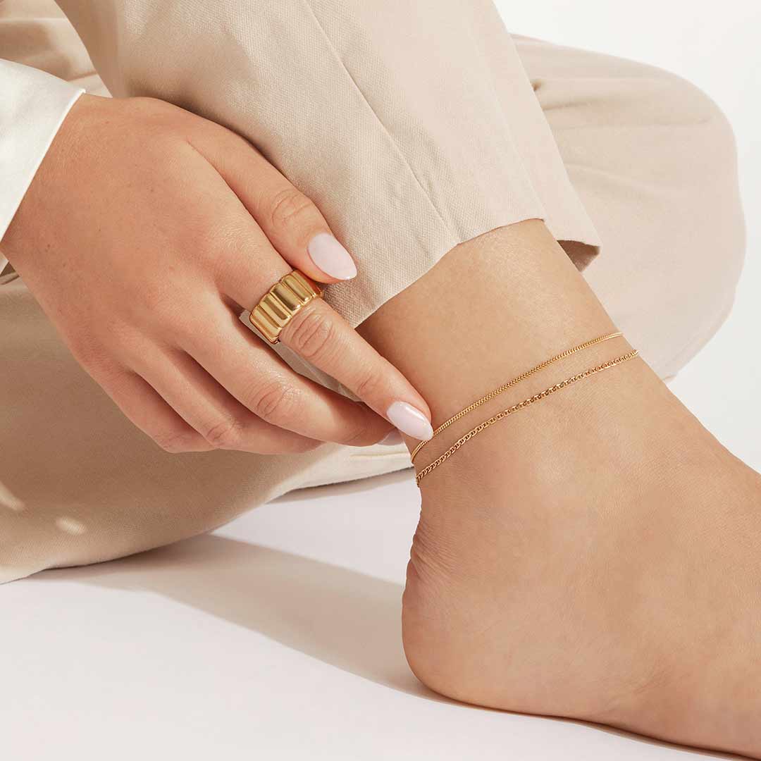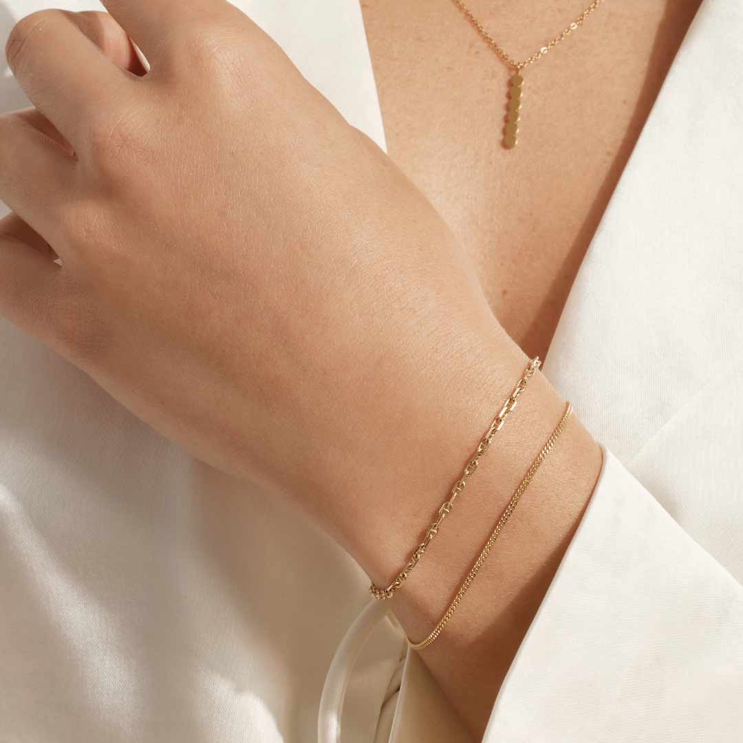 A permanent jewelry is a 14K solid gold chain that is sized to fit and welded to stay forever (or at least, as long as you want!). The process basically involves welding the two ends together to create a jewel that has no clasp. If you need to remove the jewelry for any reason, it's easy to cut the chain with a simple pair of scissors.
